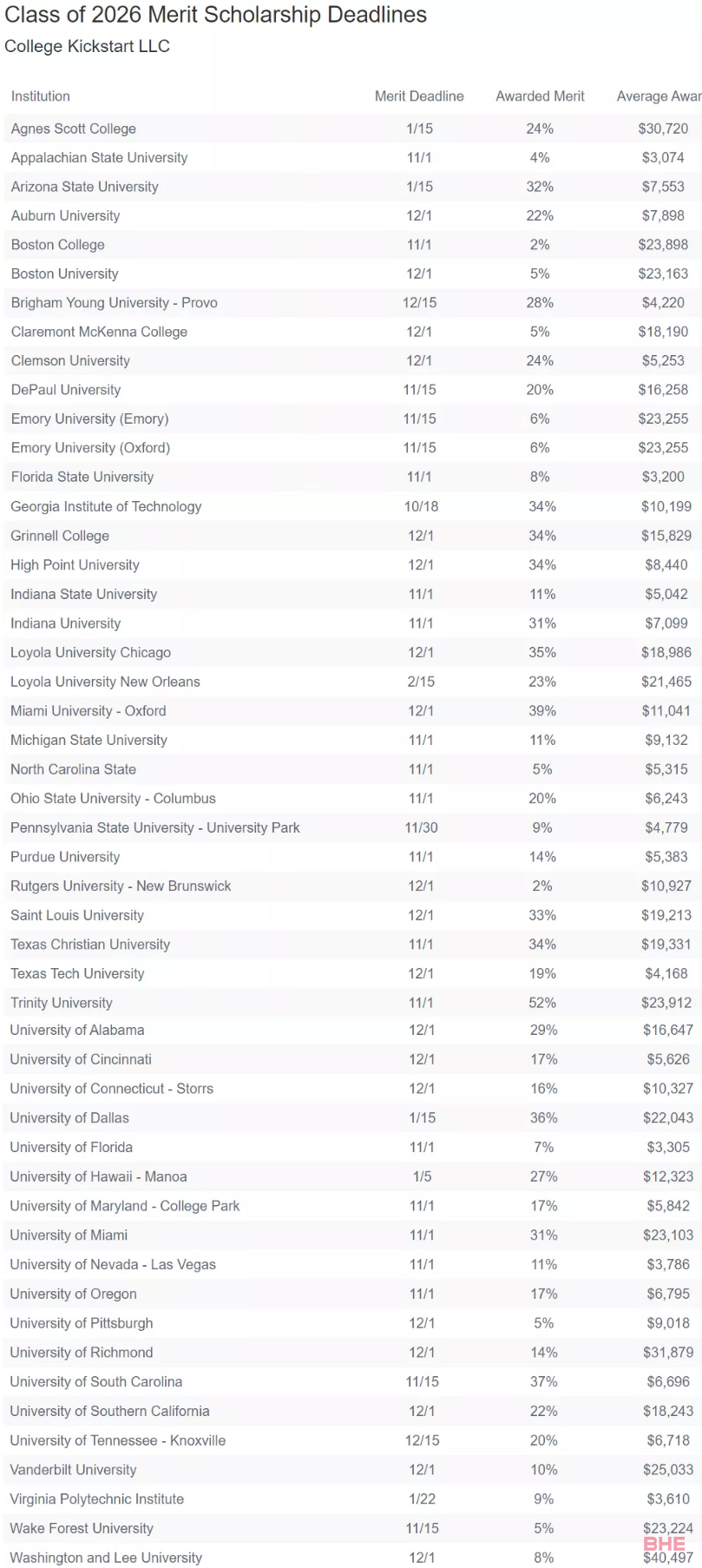 根据最新统计,2025届部分学校该类奖学金的截止日期,和去年获奖比例、平均金额,如下: