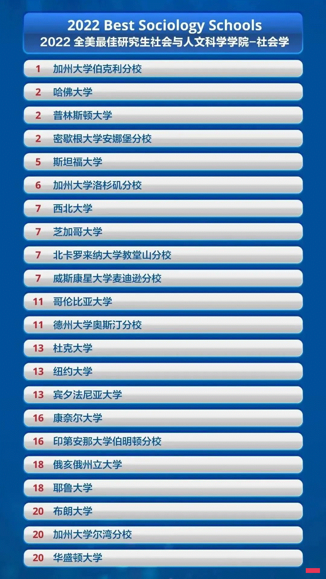 2022全美最佳研究生社会与人文科学院 - 社会学