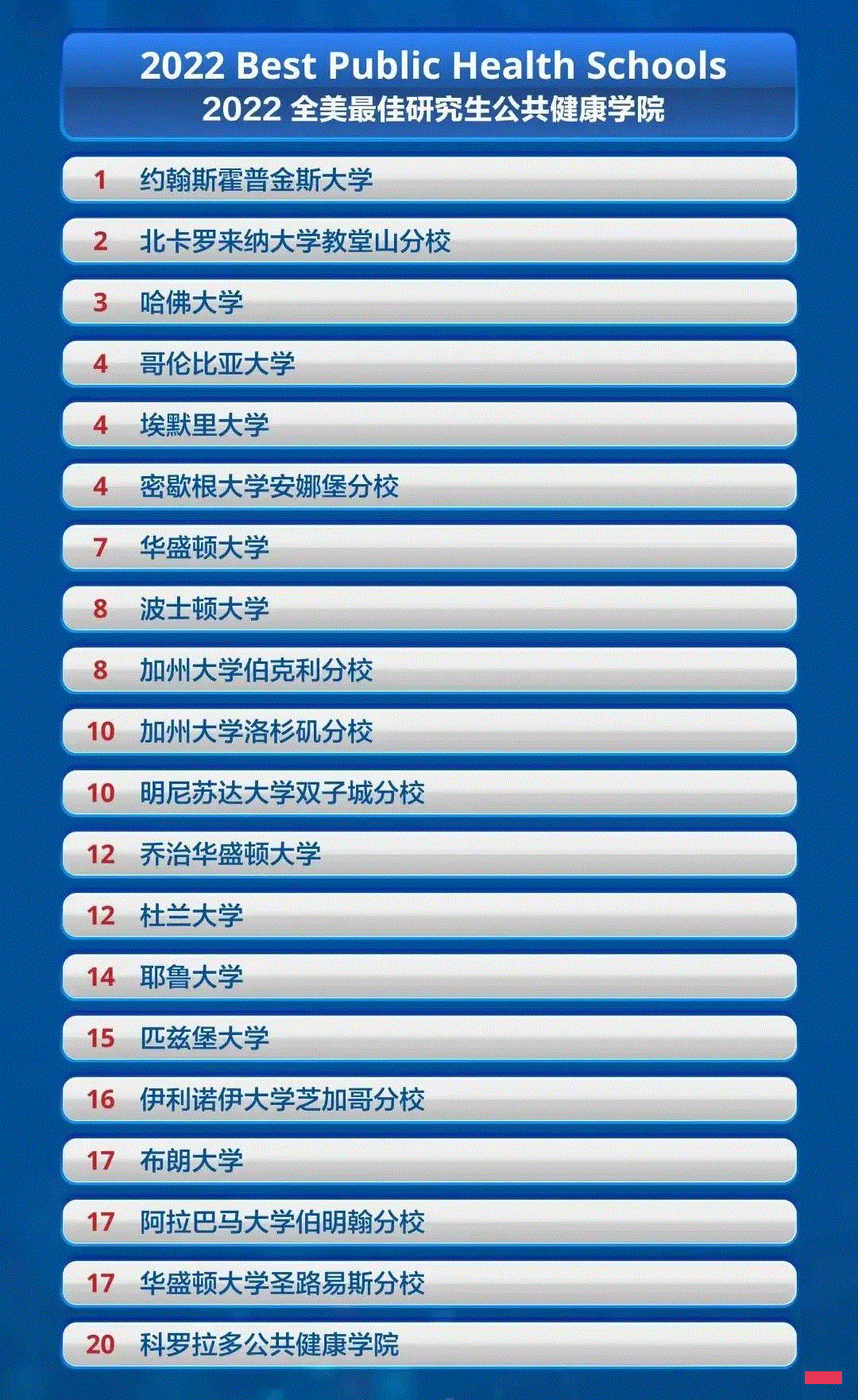 2022全美最佳研究生公共健康学院排名