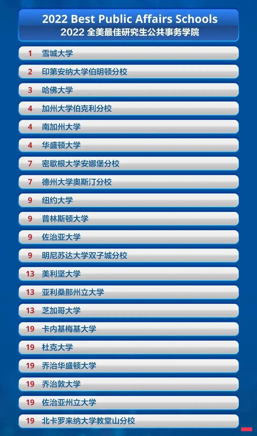 2022全美最佳研究生公共事务学院排名