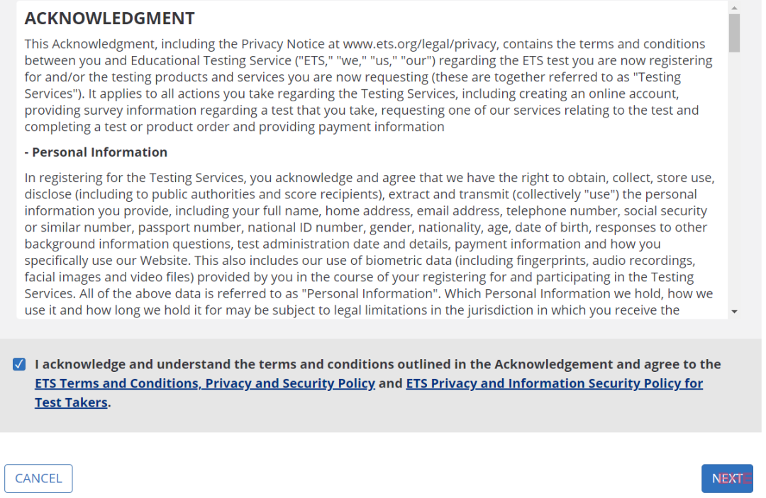 ⑥ 整个过程不再需要注册和登陆Proctor U,考生注册、预约、缴费、重新安排考试、取消考试、进行考试都将会在ETS系统中进行操作,不再需要额外注册Proctor U.