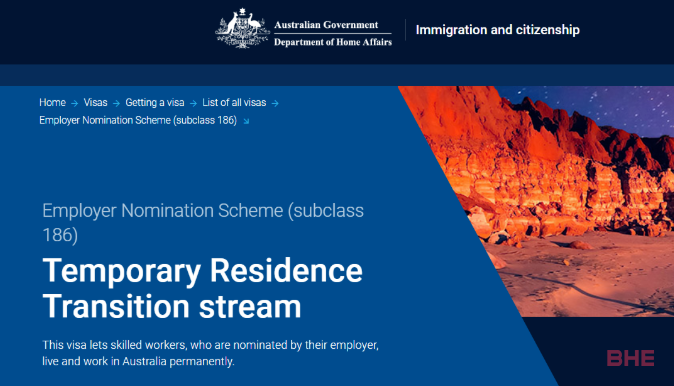 从7月1日起,持有TSS签证的申请者,可以用186雇主担保类别中的Employer Nomination Scheme Visa,以临时居留过渡的TRT类签申请PR。