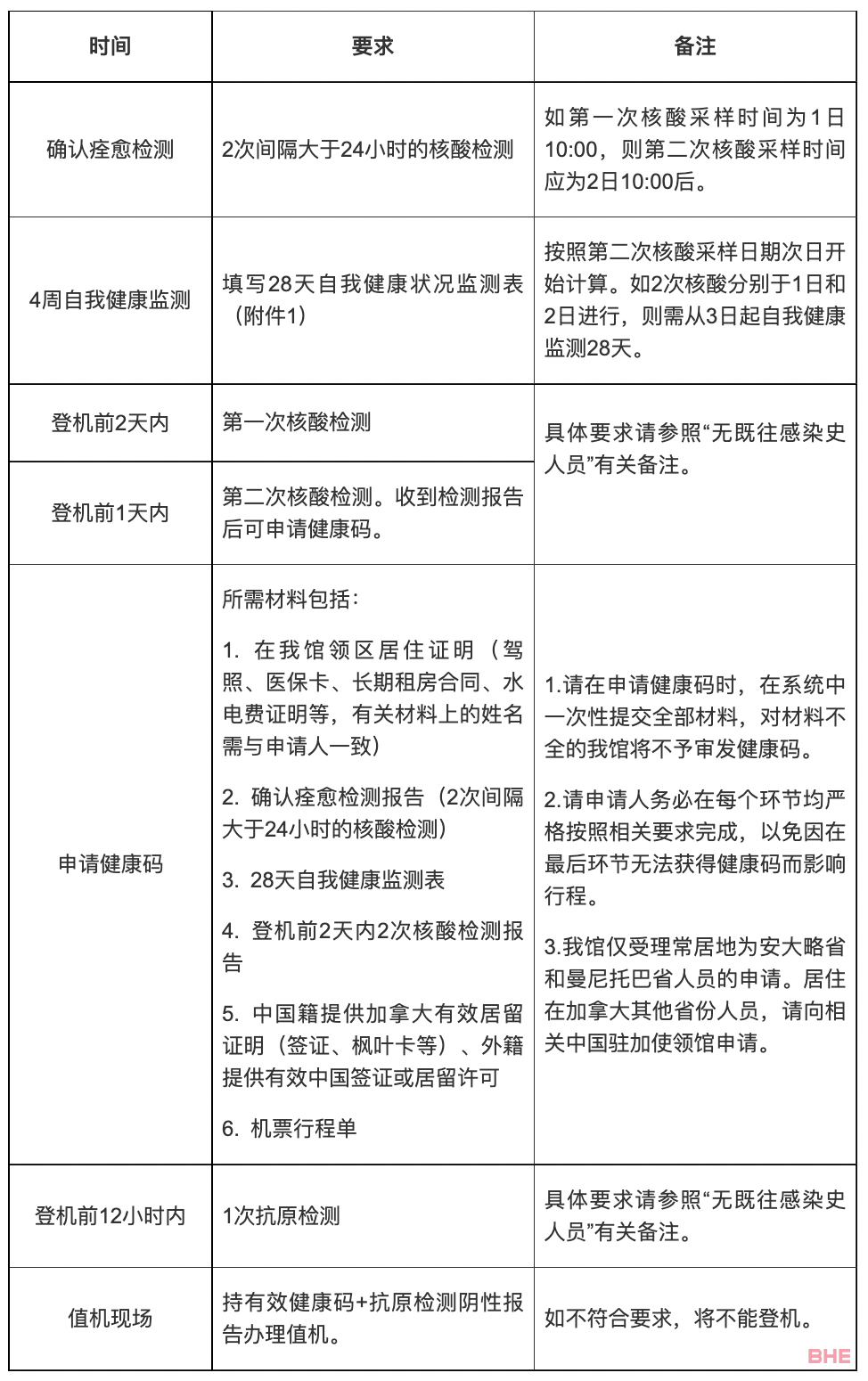 根据中国驻多伦多总领馆所公布的通知,自2022年5月21日起,对自我馆领区(安大略省、曼尼托巴省)乘坐赴华直飞航班人员行前检测要求进行调整: