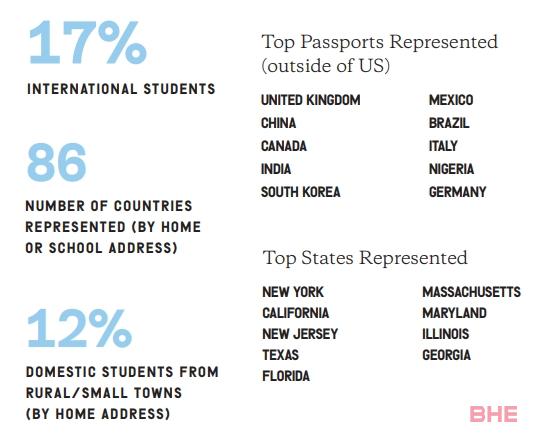 该校在本州内的影响力也广泛,来自93个县的学生汇聚于此,其中34%的学生来自农村县。