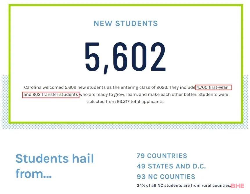 2027届北卡罗来纳大学教堂山分校(UNC)新生总计5602人,包括4700名大一新生和902名转学生。