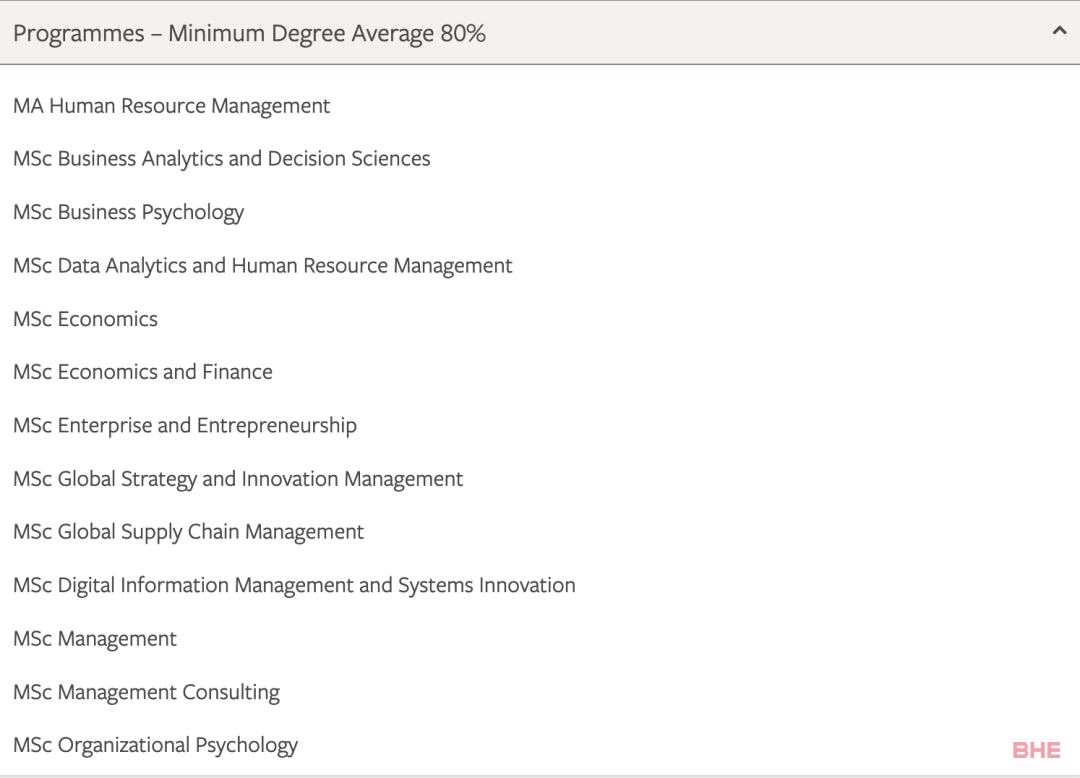商学院是利兹最热门的一个学院,所以要求也是最高的。商学院里,又划分了两批专业来定要求。