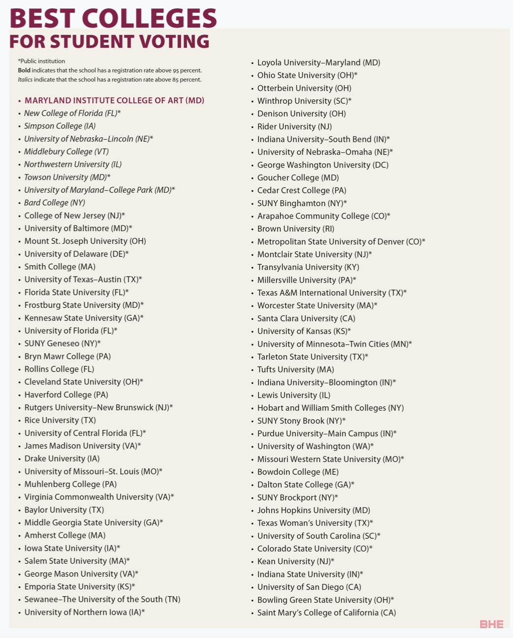 当然,除了上述比较权威的榜单,《华盛顿月刊》还根据学生的投票制定了最优秀的大学排名。
