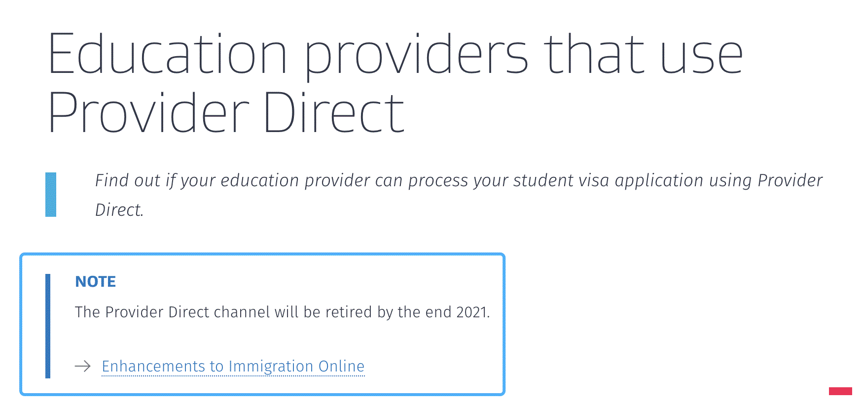 根据移民局的消息:Provider Direct 学签申请渠道,将于今年12月17日全面取消。