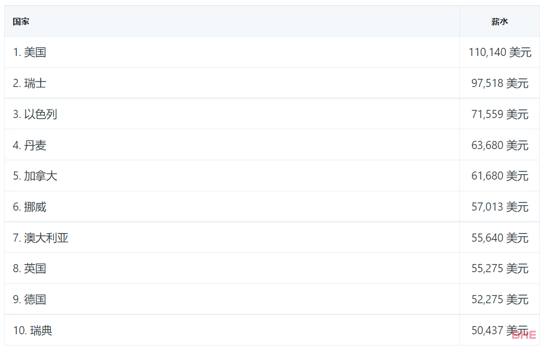 智能招聘网站Code Submit统计分析了20多个国家在2022年的软件工程领域的平均工资发现,美国的软件工程师薪资水平最高,瑞士和以色列紧随其后。