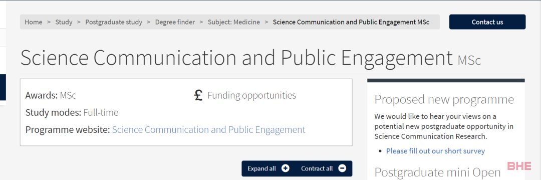 专业:MSc Science Communication and Public Engagement 科学传播与公众参与
